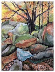 Tableau représentant le "Chaos" d'Huelgoat dans le Finistère.